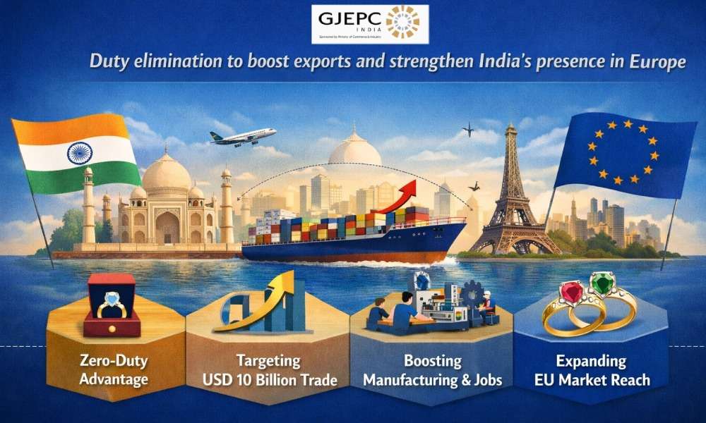 GJEPC on India–EU FTA: Zero-Duty Access Set to Double Gem & Jewellery Trade to USD 10 Billion (~₹91,000 Crore)