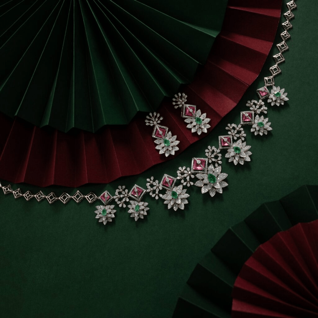 Floral Radiance: The Emerald and Ruby Diamond Set